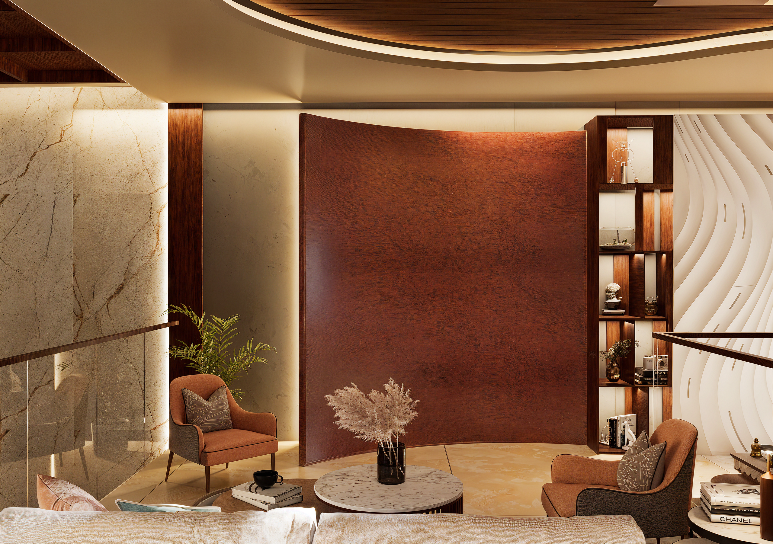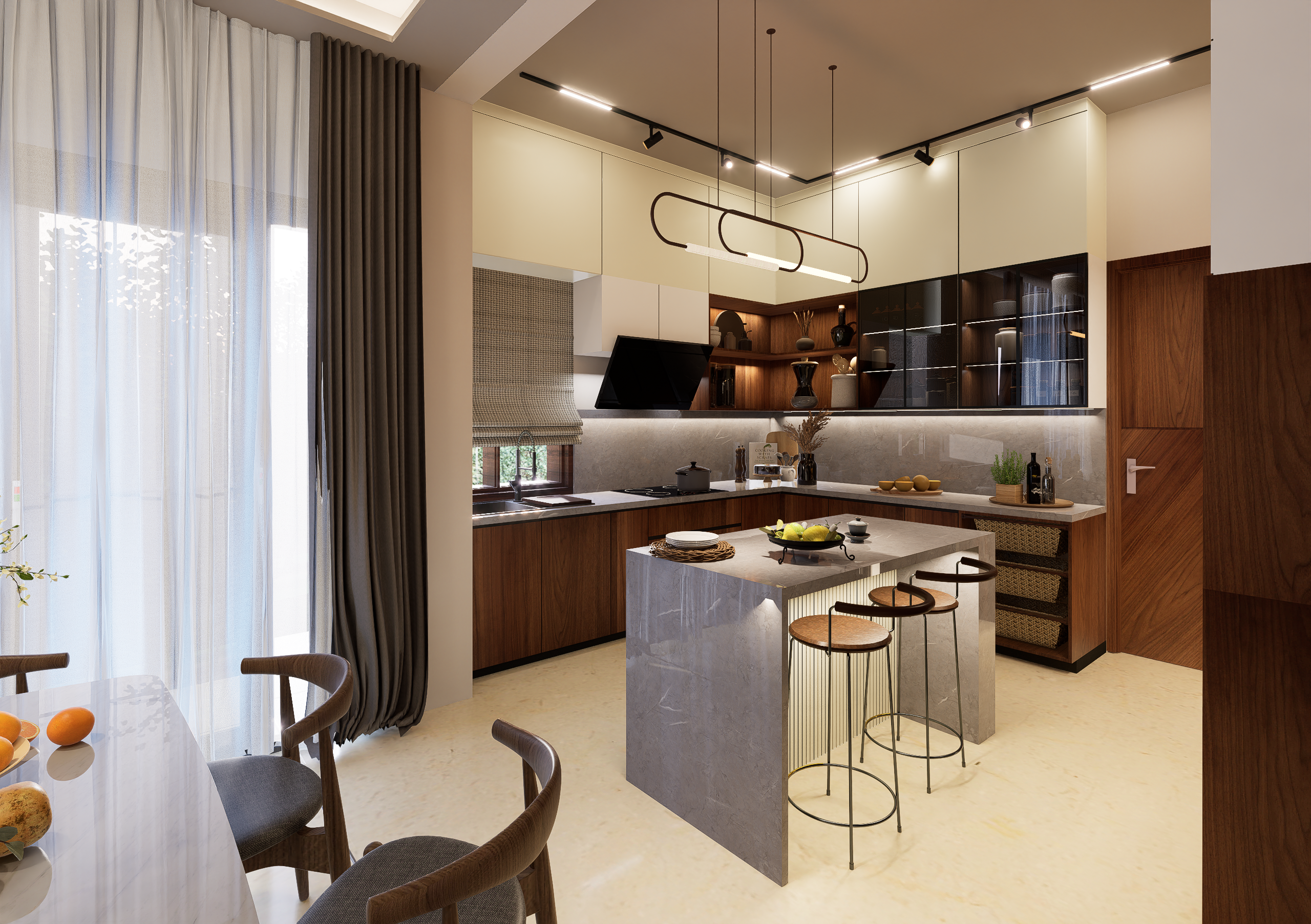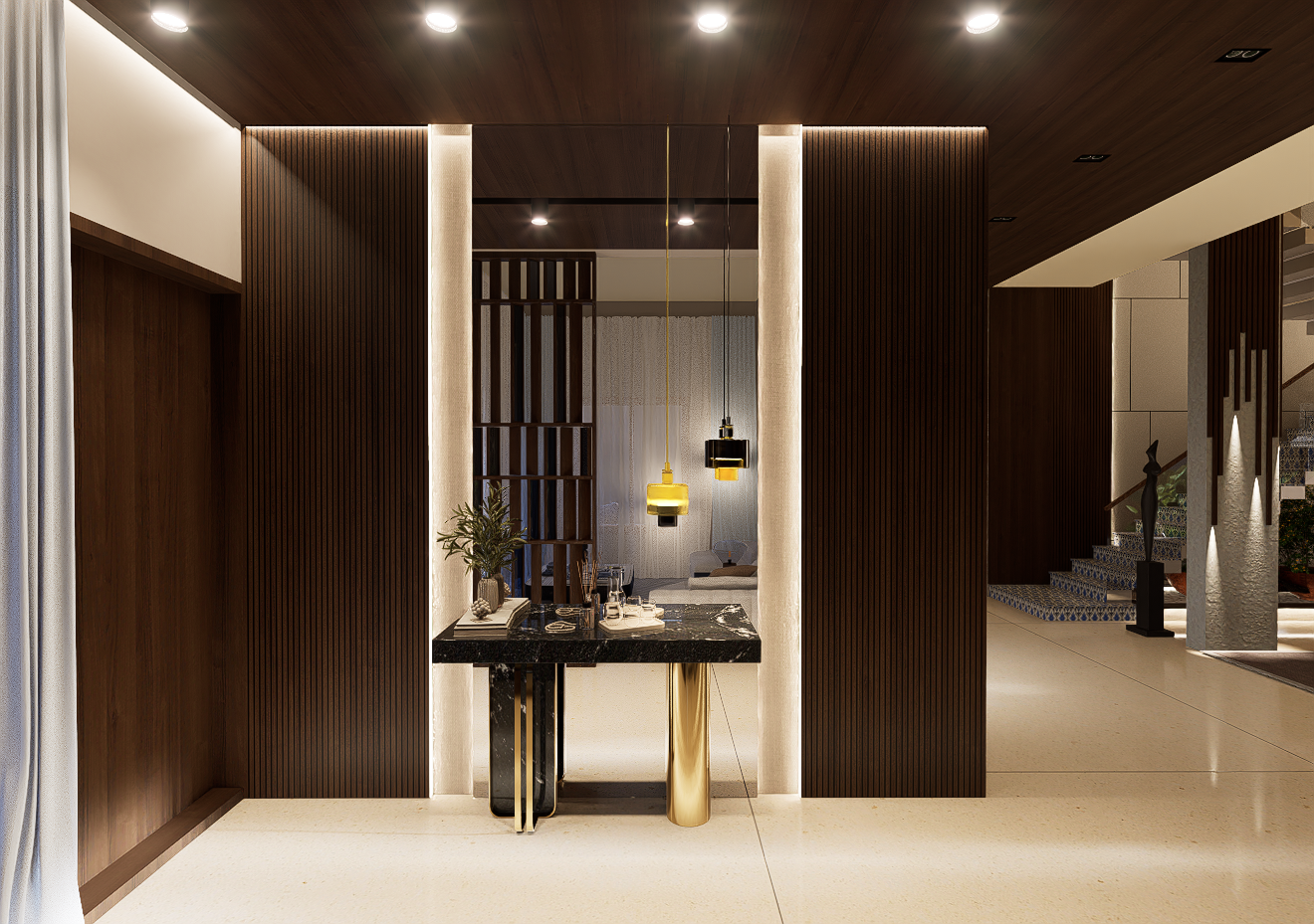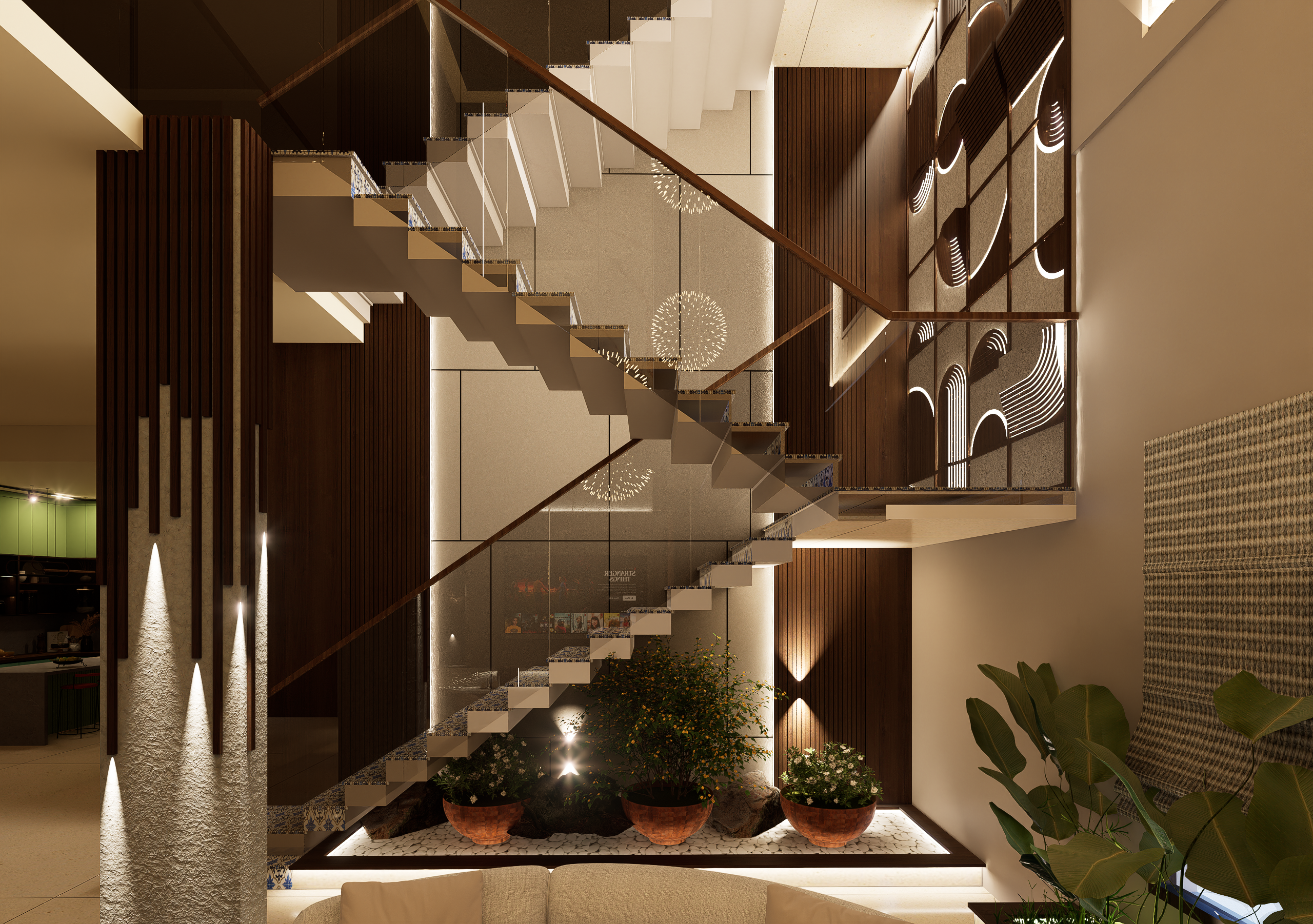 Situated in Kalkere, Bengaluru, this triplex residence for a family of four was shaped by a clear vision a contemporary home articulated through clean lines and natural finishes. Anchored in a rich spectrum of brown tones, the design layers various shades from light oak to deep walnut, creating depth and cohesion throughout the three levels. Paired with subtle metal accents, this tonal interplay of browns infuses the home with warmth, sophistication, and a timeless sense of comfort.